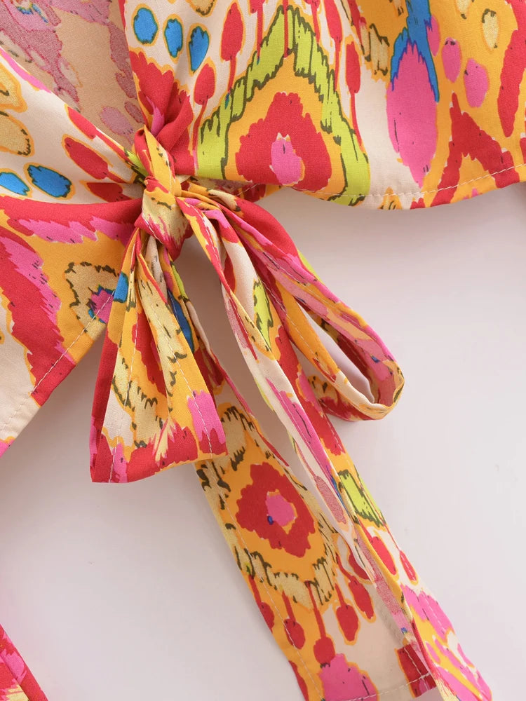 Perfect for sun-filled days and coastal getaways, this Bohemian Floral Kimono Cover-Up adds a playful, vintage flair to your swimwear look. Designed in a lightweight 100% rayon fabric, this short beach kimono features a relaxed open front, flowy ruffle flare sleeves, and a stunning psychedelic floral print that’s both eye-catching and effortlessly cool.